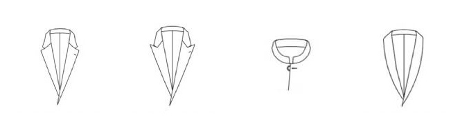 Le col châle est arrondi et continue en douceur depuis la ligne du cou jusqu’à la poitrine. Il est particulièrement élégant sur les smokings et les vestes de soirée, apportant un aspect luxueux et classique.